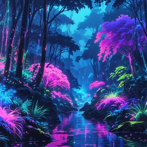 Anime Neon Rainforest 4k Desktop Wallpapers